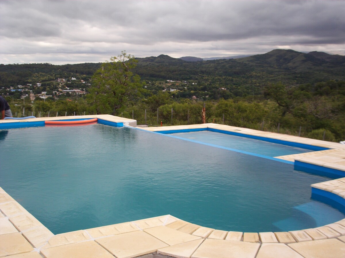 Magrelaks kasama ang buong pamilya sa tuluyang ito kung saan humihinga ang katahimikan dahil sa ikatlong microclimate sa mundo. Matatagpuan ang cabin sa gitnang lugar, may pool at sariling paradahan, mga pangkalahatang serbisyo tulad ng WiFi, heating sa lahat ng kuwarto, grill at natatanging tanawin ng Sierra Comechingones.