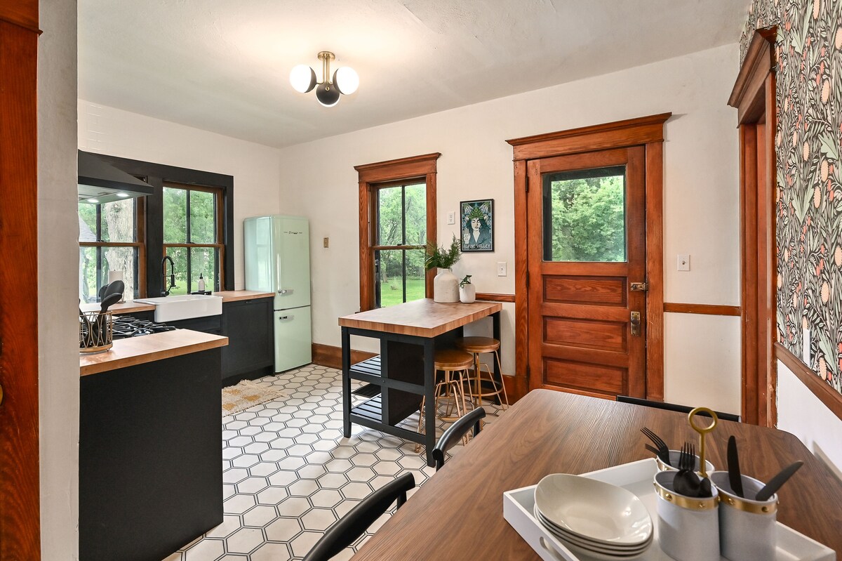 Para man ito sa isang mag - asawa, mag - asawa, o maliit na grupo, talagang hindi malilimutan ang pamamalagi mo sa makasaysayang tuluyan na ito. Magugustuhan mo ang MBR suite na nagtatampok ng gas fireplace, whirlpool tub, at double walk - in custom na tile shower. May karagdagang napakagandang buong paliguan/shower sa pangunahing palapag. Ang natapos na mas mababang antas ay may dalawang magkahiwalay na kuwarto, bawat isa ay may kalidad na double futon na may bedding na magagamit para sa iyong mga bisita. Para sa kaakit - akit na presyo na ito, ang itaas na 4 na silid - tulugan ay naka - lock ngunit maaaring buksan para sa higit pa