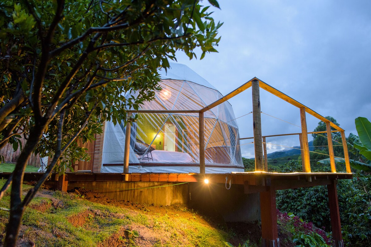 Nag - aalok ang Glamping Caparaó ng hindi malilimutang karanasan sa pagho - host. Matatagpuan kami sa gitna ng isang coffee farm, 4 km mula sa Capixaba Ordinance ng Caparaó National Park (Pedra Menina), at nagbibigay ng kaginhawaan ng tuluyan na may kagandahan ng kalikasan. May maliit na kusina, mainit at malamig na aircon, at hot tub, nasisiyahan ang mga bisita sa mga natatanging sandali na napapalibutan ng mga bundok ng Caparaó. Mainam ang aming lokasyon para sa mga mahilig sa kalikasan, na may mga trail at waterfalls.