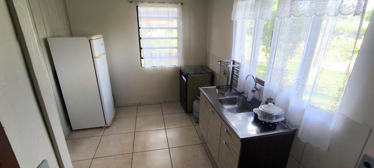 Tangkilikin ang madaling access sa lahat ng kailangan mo sa tuluyang ito na may magandang lokasyon. Isang kumpletong bahay na may dalawang kuwartong may air‑condition, isa ay may double bed, at ang isa ay may single bed at bunk bed, malinis na banyo na may mainit na shower, kumpletong kusina na may kalan, lababo, kubyertos, mga kaldero at kawali, shed na may refrigerator, freezer, barbecue, lababo, mesa, kalan na gumagamit ng kahoy, garahe para sa kotse at bangka, panlabas na shower, ligtas at kaaya‑ayang lugar, perpekto para sa turismo, at handang tumanggap ng mga mangingisda.