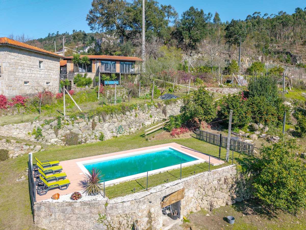 Masiyahan sa katahimikan, sa tahimik na kapaligiran ng nayon, at magising sa huni ng mga munting ibon. Ang Crespos ay matatagpuan 8 km mula sa Braga, at 4 mula sa Amares, sa pagitan ng lunsod at kanayunan, isang perpektong unyon. Mayroon itong pribadong swimming pool, na walang chlorine, na may natural na paggamot ng asin, malinaw na tubig, at may kaaya - ayang temperatura. Makulay at sariwa ang hardin. Maaari kang kumain sa labas, sa terrace o hardin, sa tabi ng pool. Malugod kang tinatanggap sa magandang bahay na ito ng maliliit na ibon.