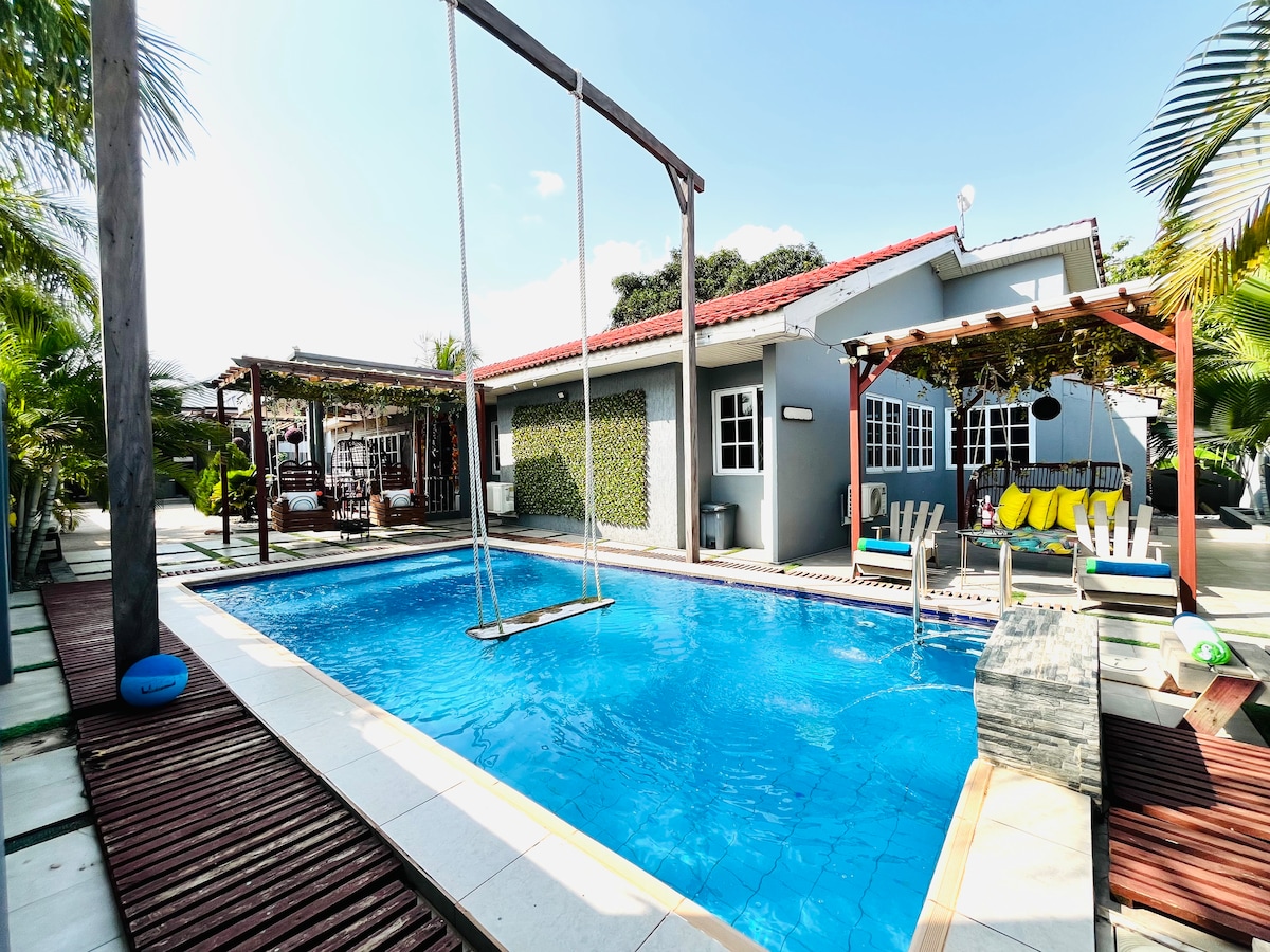 Maligayang pagdating sa Nubian Villa! ! Isang 4 na silid - tulugan na marangyang villa na may 3 mararangyang banyo na nag - aalok ng isang enriching, enlightening at isang kahanga - hangang karanasan sa pamumuhay. Mula sa masaganang disenyo hanggang sa mga pasadyang amenidad na may nakamamanghang pribadong pool at tunay na privacy. Nag - aalok sa iyo ang Nubian Villa ng isang karanasan na kadakilaan at pagiging perpekto tulad ng dati. Maraming espasyo ang villa, perpekto para sa mga pamilya , grupo, at business traveler. Sa labas, masisiyahan ang mga bisita sa pribadong pool, pergola, at mga nakasabit na duyan