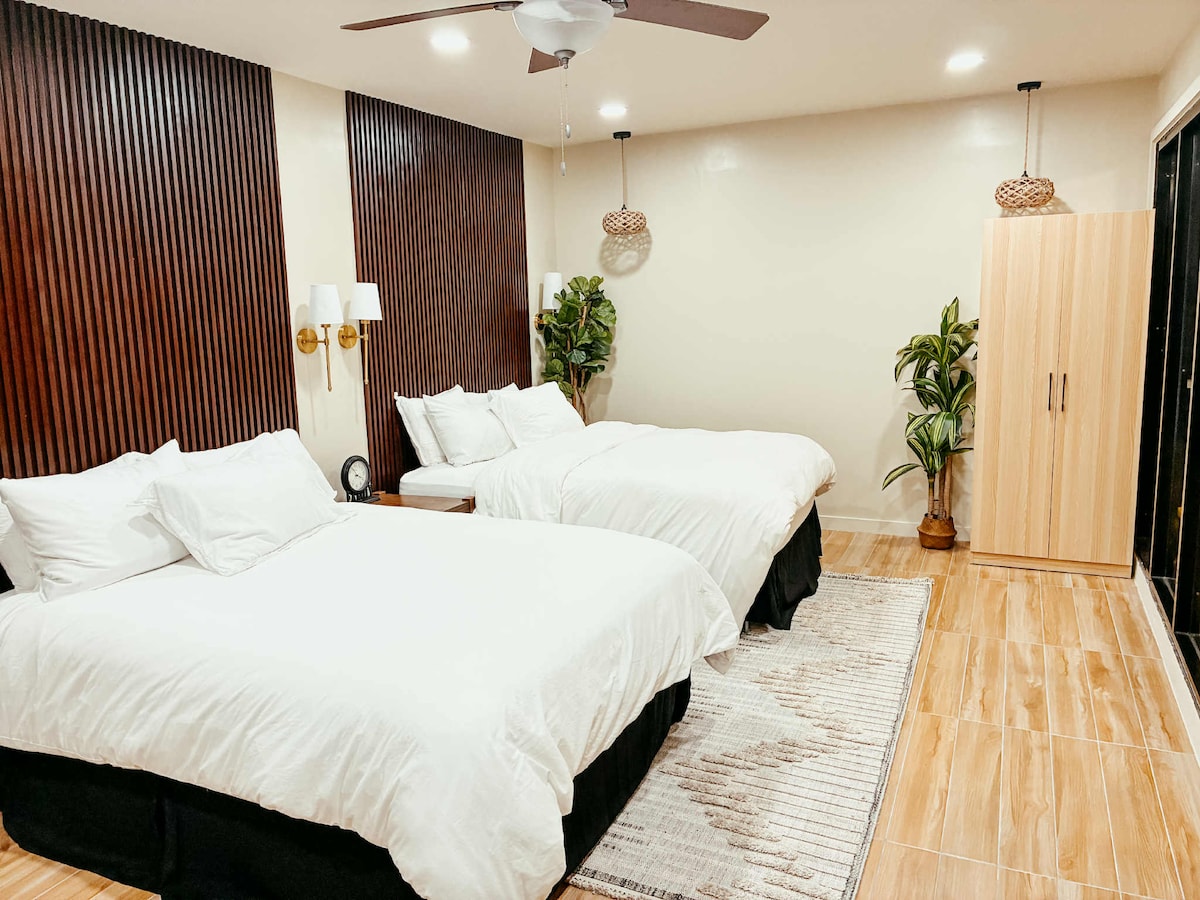 Escape to your own slice of Pala-dise in this bright & airy tropical room nestled on the waterfront of the Nu'uuli pala lagoon. Featuring an open layout with two comfortable queen beds, a full bathroom, couch, microwave, fridge, & a private patio overlooking the water. Whether you're here on a romantic getaway, solo escape, or peaceful work-from-paladise stay, this waterfront bedroom offers the perfect blend of comfort, tranquility and island charm.