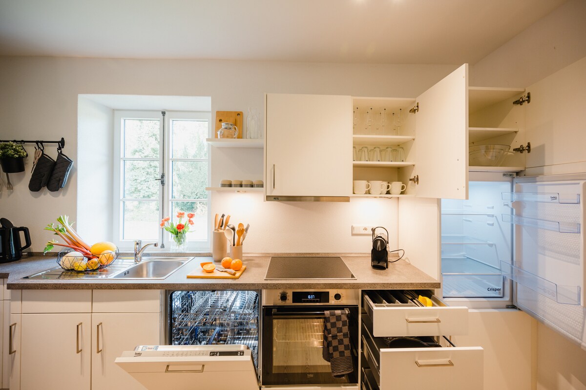 Take some time out and spend a nice holiday at the Ammersee and in the 5 lakes region or stay in the Starnberg area for business purposes. Book our new 3 room flat (89sqm) with fully furnished and new high quality fitted kitchen. From the balcony you have an indirect view of the Ammersee and in only 4 minutes on foot you are already at the longest lake promenade in Germany. The S-Bahn (S8 Munich and airport) is a 15-minute walk away.