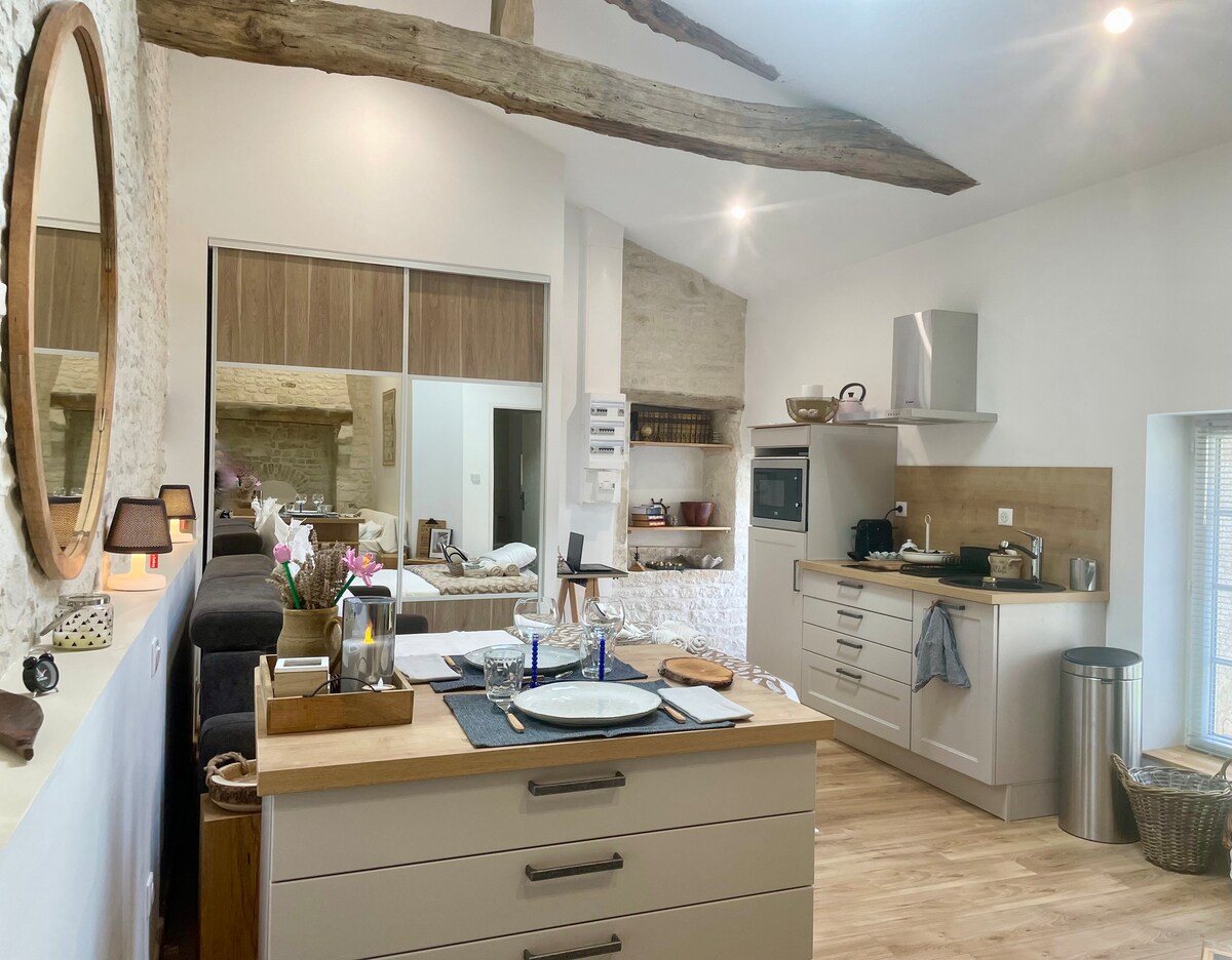 Maligayang pagdating sa "La Suite" ang iyong lugar ng pag - ibig at pagpapahinga na matatagpuan sa mga pintuan ng Angouleme. Idinisenyo ang nakamamanghang independiyenteng suite na ito para sa mga naghahanap upang lumikha ng mga di malilimutang sandali para sa isang espesyal na okasyon o isang sorpresa lamang sa iyong kalahati. Chic, walang takot, ang maaliwalas na lugar na ito ay masisilaw ka sa nakamamanghang tanawin at paglubog ng araw nang harapan. Halika at mag - enjoy sa mga bagong karanasan para sa isang romantikong pamamalagi o katapusan ng linggo.