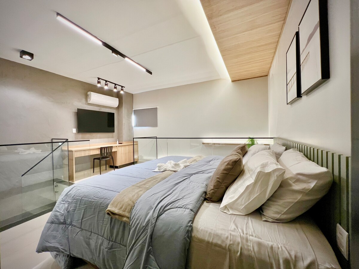 Maghanda para mapabilib sa kataas - taasang pagpipino ng kilalang Loft na ito sa Anápolis, kung saan ang bawat detalye, mula sa mga makabagong kasangkapan hanggang sa higaan , ay nagbibigay ng natatanging karanasan! Tumatanggap ang aming tuluyan ng hanggang 4 na tao, na may King Size na higaan at double sofa bed. Matatagpuan ilang metro mula sa Hospital Ânima, mula sa UniEvangélica, handa kaming tanggapin ka nang may buong kaginhawaan.
