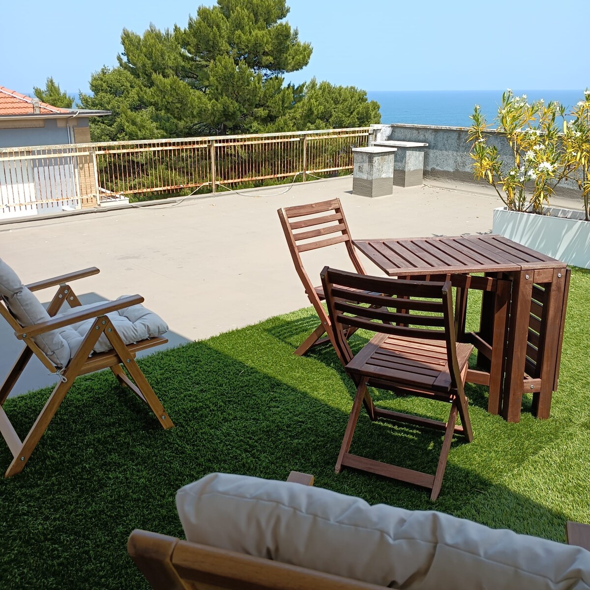 Magrelaks sa tahimik na studio apartment na ito na matatagpuan sa tuktok na palapag ng isang sentral na matatagpuan at patag, malawak, terrace at sa harap ng dagat. Malapit sa pampublikong transportasyon, lahat ng serbisyo, at Salesi Hospital. Access sa PASSETTO BEACH sa pamamagitan ng elevator o hagdan ilang metro mula sa gate!! Nilagyan ng eksklusibong paradahan para lang sa MALILIIT o KATAMTAMANG LAKI NA MGA KOTSE (maximum na haba na 4.50 m) Pambansang Code ng Pagkakakilanlan: IT042002C2O9B5QWZO