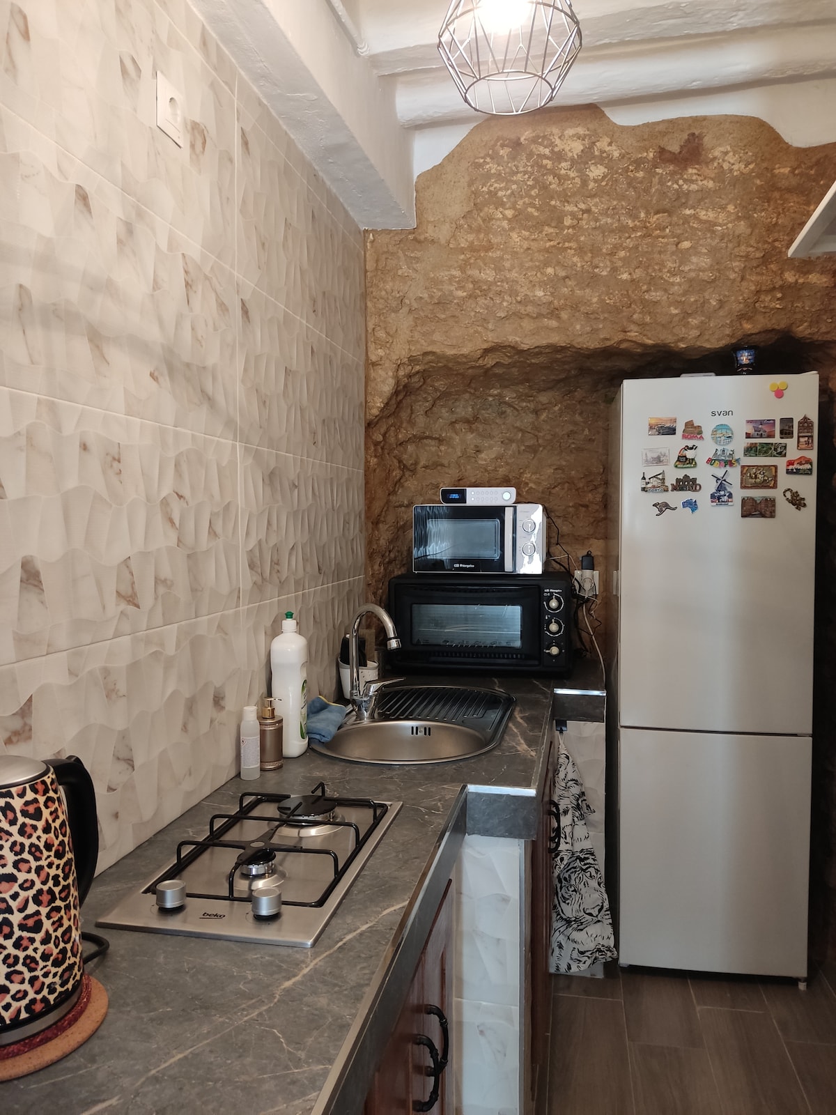 Kamangha - manghang bagong ayos na kuweba. Nagtatampok ang tunay na lugar na ito ng 1 master bedroom, maluwang na sala na may sofa bed, kusina, at banyo. Matatagpuan ito sa gitna ng sikat na kapitbahayan ng Granadian sa "Sacromonte", ilang metro lang ang layo mula sa pinakamagagandang tabla ng flamenco sa lungsod at mga nakamamanghang tanawin. Mayroon ding patyo sa labas ang kuweba para sa paggamit ng bisita. Isang magandang oportunidad para manirahan sa isa sa mga sikat na kuweba ng Sacromonte.