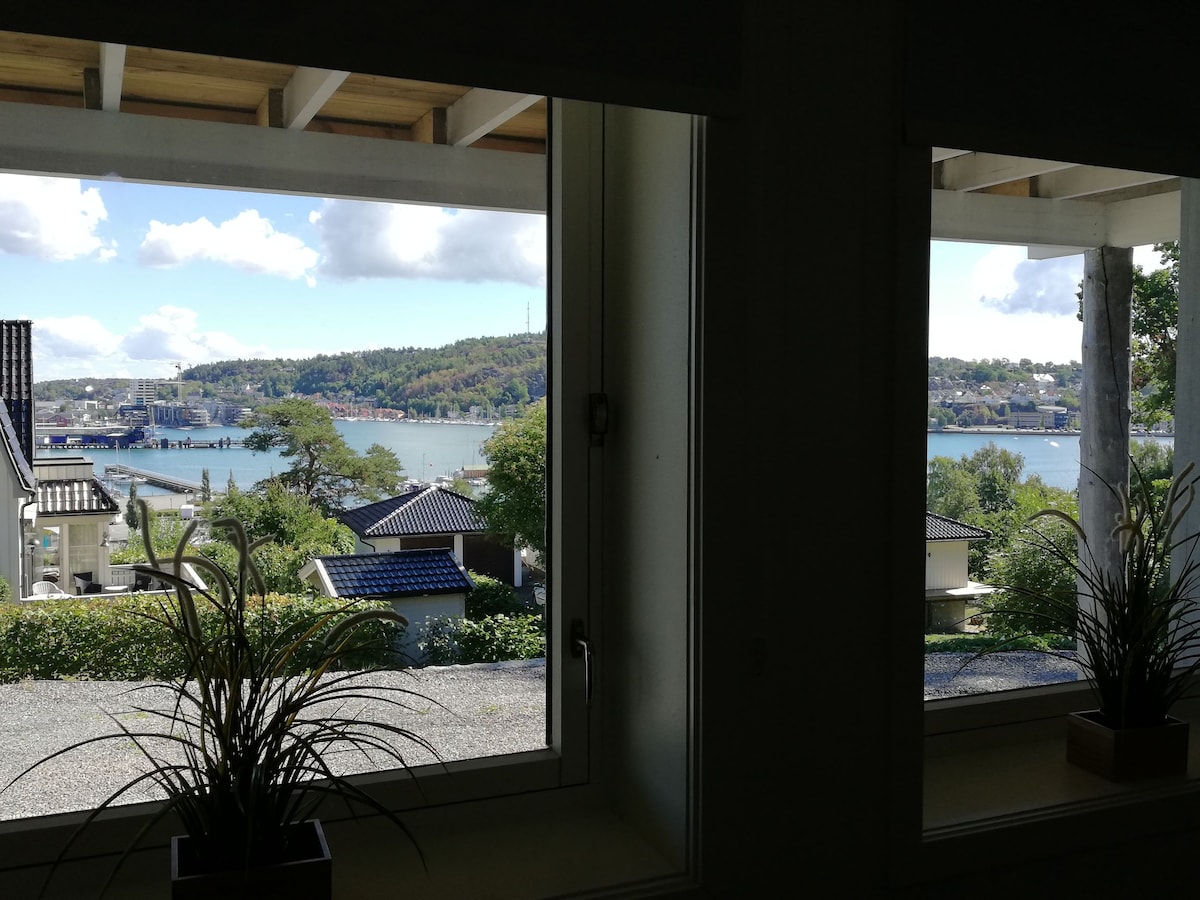 Ang iyong sariling apartment na 50m2 para sa iyong sarili na may pribadong pasukan. Madaling pag-check in at pag-check out gamit ang key box, nang walang host. Magandang tanawin ng daungan, lungsod, at dagat. Ang kagubatan sa likod mismo. Tahimik na kapaligiran. May libreng paradahan sa labas ng apartment Kasama ang linen ng higaan at mga tuwalya Malapit sa sentro ng lungsod, bus, tren, at koneksyon sa Torp airport 4 na tulugan. Banyo na may shower, washing machine, at dryer Kusinang kumpleto sa kagamitan na may kalan at microwave TV na may DVD at mga pelikula Libreng WiFi