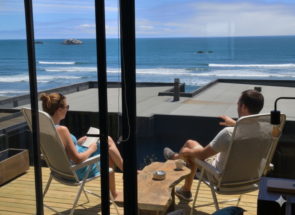 Una escapada costera con impresionantes vistas al mar hasta donde alcanza la vista. Especial para relajarse solo o en pareja. La mañanas son maravillosas en su terraza para disfrutar un buen café, o en las tardes para contemplar las puestas de sol. Si te gusta cocinar, puedes hacer uso de la cocina, o tal vez disfrutar de los restaurantes cercanos a no más de 15 minutos caminando.