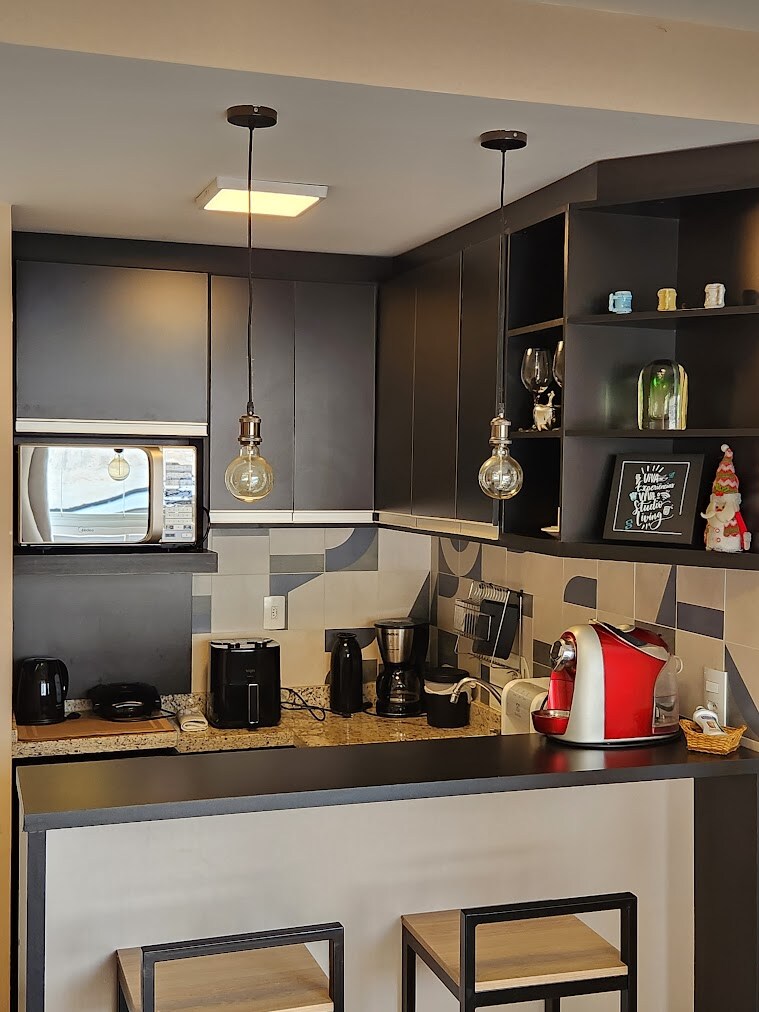 Lindo Studio sa gitna ng Poços de Caldas, malapit sa mga pinakamagagandang restawran at bar sa lungsod. Sa tabi ng Praça dos Macacos kung saan magaganap ang pinakamagandang karnabal ng Poços. May gym, meeting room (Coworking), at labahan ang gusali. Kumpleto na ang aming Studio, kung saan magkakaroon ka ng pagkakataong tamasahin ang magandang tuluyan na handang tanggapin ang mga ito bilang pinakamagandang kaginhawaan at kaligtasan.