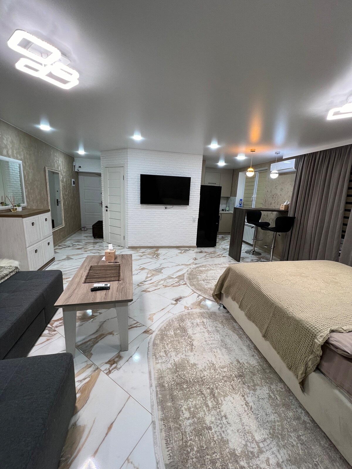 Naghahanap ka ba ng perpektong lugar para sa iyong panandaliang pamamalagi? Ikinalulugod naming ialok sa iyo ang aming bago at naka - istilong apartment na may isang kuwarto na may modernong pagkukumpuni! - Mga bagong muwebles at Technics Mag - enjoy sa kaginhawaan at kaginhawaan dito! - Modernong kusina: Ganap na nilagyan ng lahat ng pangunahing kailangan. - Washing machine: Kalimutan ang abala — mayroon itong lahat para sa iyong kaginhawaan. - Lokasyon: Nasa prestihiyosong lugar ang apartment.