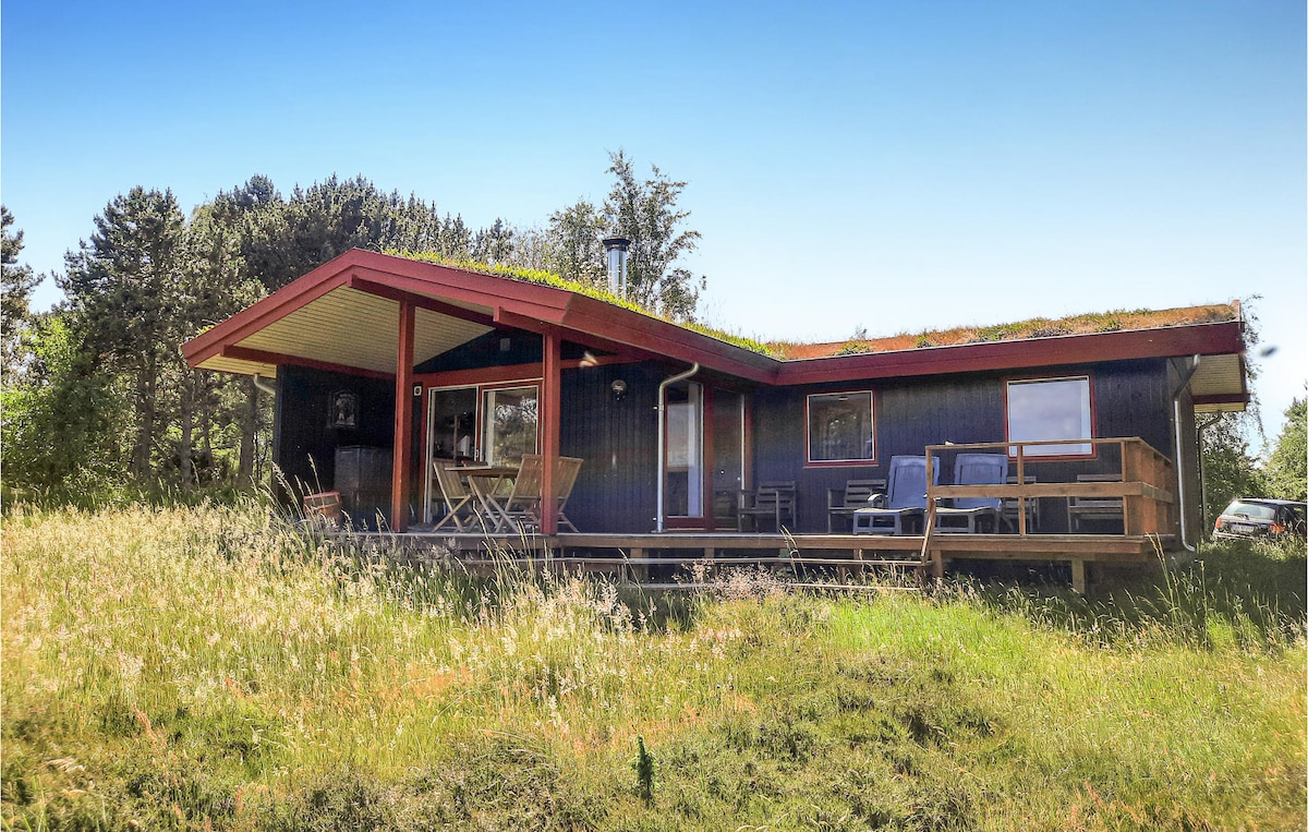 Idyllisk Bjælkehytte på enestående naturgrund på Nordbjerg. Huset ligger på en 5000 m2 stor naturgrund i et fredet område. Der er massere af plads til at børn kan gå på opdagelse og boltre sig, eller alternativt nyde den gode udsigt fra terrassen. Huset ligger ugenert og fredeligt, da området er fredet og kun huser få andre grunde med bebyggelse. Kun vindens susen i træerne forstyrrer dine tanker. Kun 150 m fra boligen, findes kærlighedsstien og udsigt til fyret, ørkenen, nordstrand og flakket.