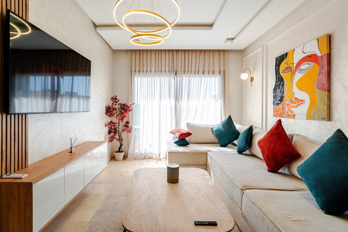 Matatagpuan sa Avenue Mohammed VI sa Marrakech, nag - aalok ang modernong apartment na ito ng 3 kuwarto, 2 banyo, heated pool, at pribadong gym. Ang dalawang pribadong rooftop ay nagbibigay ng mga malalawak na tanawin ng golf course at Atlas Mountains - perpekto para sa mga pamilya o kaibigan. Nag - aalok ang ligtas na tirahan ng 24/7 na seguridad para sa mapayapang pamamalagi. Tandaan: malapit sa paliparan ang apartment, kaya maaaring magkaroon ng ingay sa eroplano paminsan - minsan. Ibinabahagi namin ito nang hayagan para matiyak ang isang malinaw at komportableng karanasan sa panahon ng iyong pagbisita.