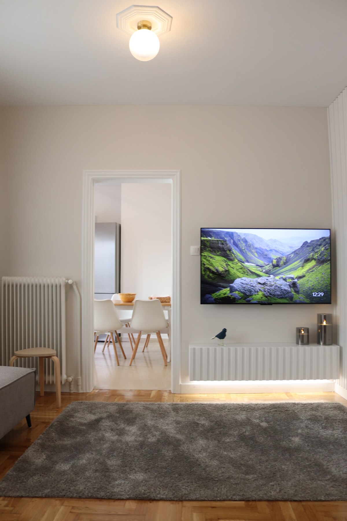 Nasa sentro ng lungsod ang apartment na may dalawang kuwarto at kusina at malapit ka sa lahat ng kailangan mo. Kasabay nito, hindi ka magkakaroon ng anumang problema sa abala at polusyon sa ingay. Tinatanaw nito ang loob na patyo at may balkonahe kung saan puwede mong i - enjoy ang iyong kape nang tahimik at tahimik. Ito ay isang renovated na bahay na may modernong dekorasyon, mainit - init sa taglamig at malamig sa tag - init.