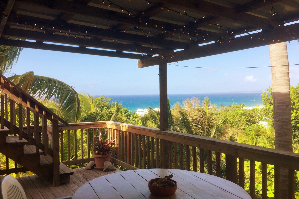 This tiny treehouse is located at the lovely Finca Victoria in Vieques— finca-victoria .com. Set on the magical island of Vieques, this unit gives you all the fun of a treehouse and the unique floor plan of a tiny house! The first floor has a deck surrounded by a garden with a kitchen, bathroom, closet, and outdoor shower. Upstairs you'll find a queen-sized bed, and a beautiful balcony with an amazing ocean view. Complimentary yoga and vegan, Ayurvedic breakfast are included in your stay.