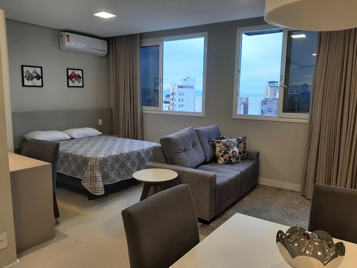 Halika at tamasahin ang mga kababalaghan ng Magic Island sa pinakamahusay at pinaka - modernong pag - unlad ng Florianopolis. Maginhawang 50m studio na may garahe. Komportableng tumatanggap ng 2 matanda. Nilagyan ng lahat ng kailangan mo para maging komportable. Available ang property na ito para sa upa, buwanang, bimonthly, quarterly at semi - taunang. Tingnan ang aming mga diskuwento.