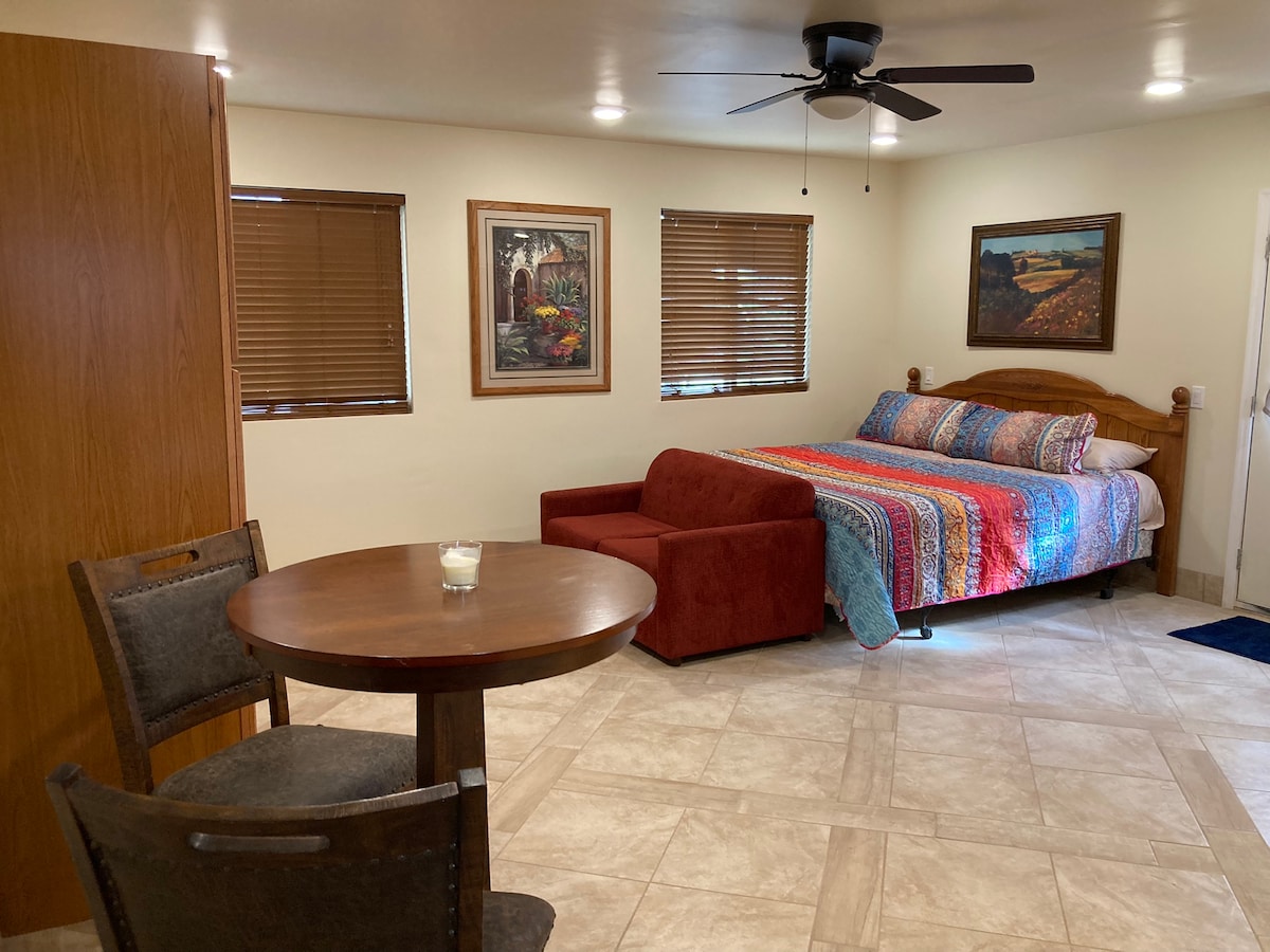 Ang aming casita ay nagtatago sa ilalim ng anino ng Superstition Mountains na may kamangha - manghang tanawin ng Flat Iron. May access sa mga pribadong trail patungo sa Lost Dutchman State Park at Tonto National Forest, magagawa mong tuklasin ang lahat ng disyerto na gusto mo. Matatagpuan malapit sa sikat na Goldfield Historic Ghost Town, Paseo Event Center, ang infamous Hitching Post Saloon at minuto lamang ang layo mula sa Canyon Lake. Ang isang silid - tulugan ay bukas sa konsepto na walang pinto at may kasamang mga bunk bed. Ang isa pa ay isang master suit.