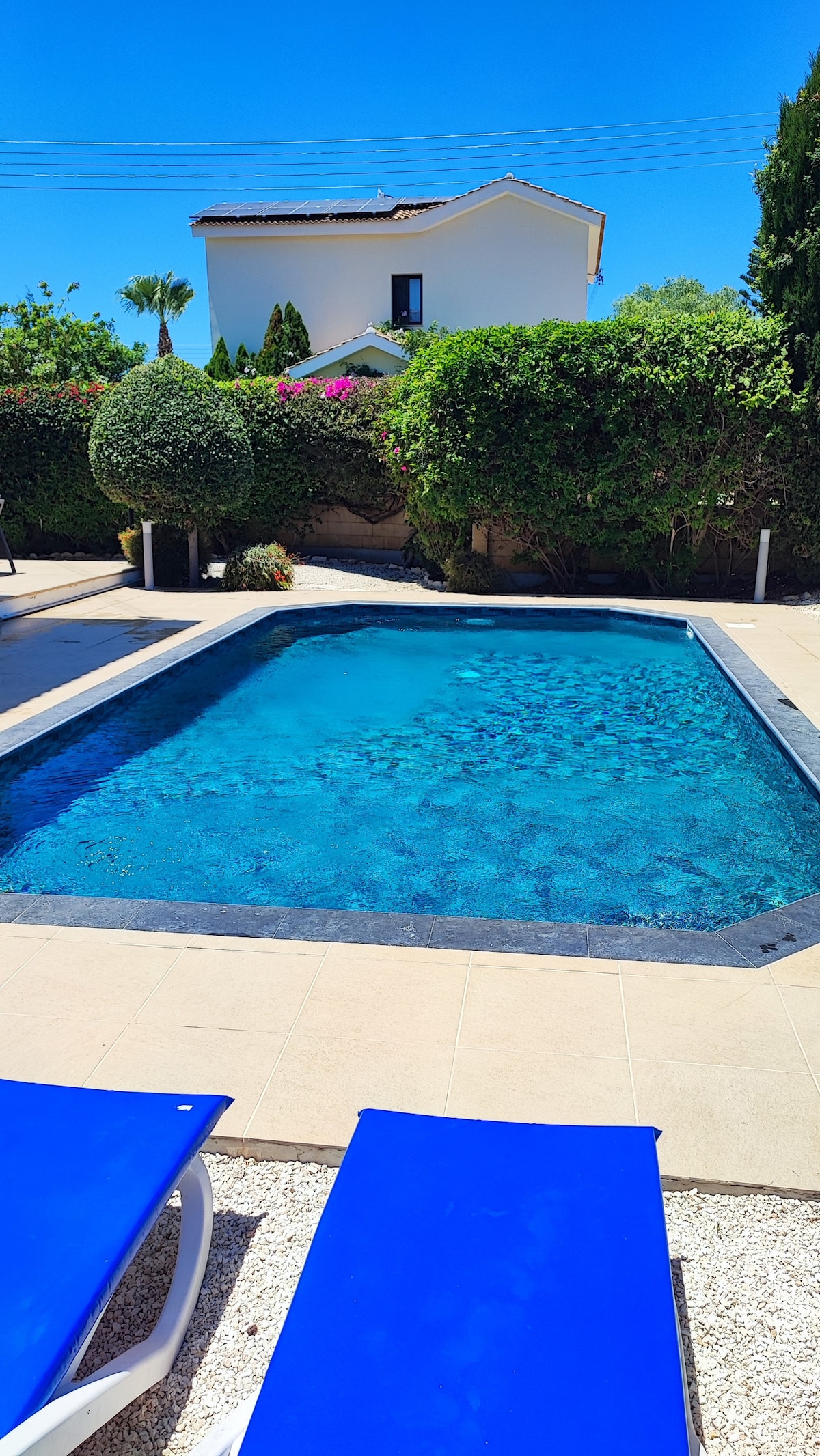Ang cocoon villa ay isang pagdiriwang ng kalikasan at pagiging natatangi sa kontemporaryong disenyo at at atensyon sa detalye. Nagtatampok ng sobrang laking kusina, tatlong silid - tulugan at tatlong banyo, at walang limitasyong tanawin ng Mediterranean Sea. Matatagpuan sa sikat na Coral Bay, 3 minutong biyahe lang ang layo papunta sa beach at 5 minutong biyahe papunta sa pinakamagagandang pamilihan, restawran at bar. Ang crescendo sa kuwento ay ang ganap na pribadong outdoor entertainment pool area, na kumpleto sa mga luxury sun - beds at isang fully equipped na BBQ/Bar.