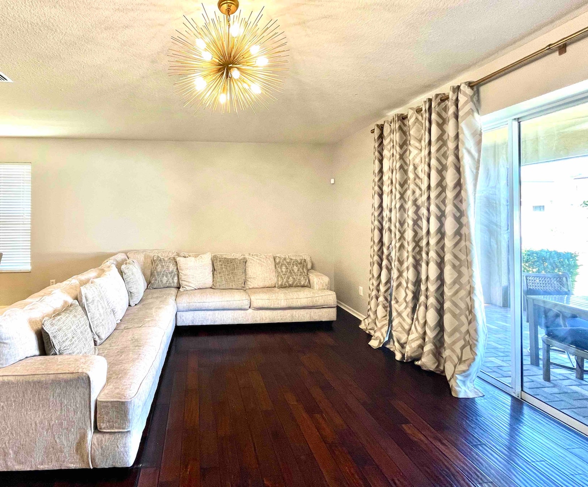 Tuklasin ang pinakamagandang bakasyunan sa Florida sa maluwang na 3,000 talampakang kuwadrado na modernong tuluyan na ito, na perpekto para sa mga pamilya o grupo. Masiyahan sa nakatalagang opisina, kasama ang 80 pulgadang 3D TV para sa mga gabi ng pelikula o sports game. Matatagpuan malapit sa mga nangungunang atraksyon: 15 minuto papunta sa downtown, 10 minuto papunta sa kainan at pamimili, 50 minuto papunta sa mga beach, 10 minuto papunta sa TopGolf, 15 minuto papunta sa casino, 20 minuto papunta sa Busch Gardens, at 1 oras lang mula sa Disney. Yakapin ang kaginhawaan, kaginhawaan, at kaguluhan - i - book ang iyong pamamalagi ngayon!