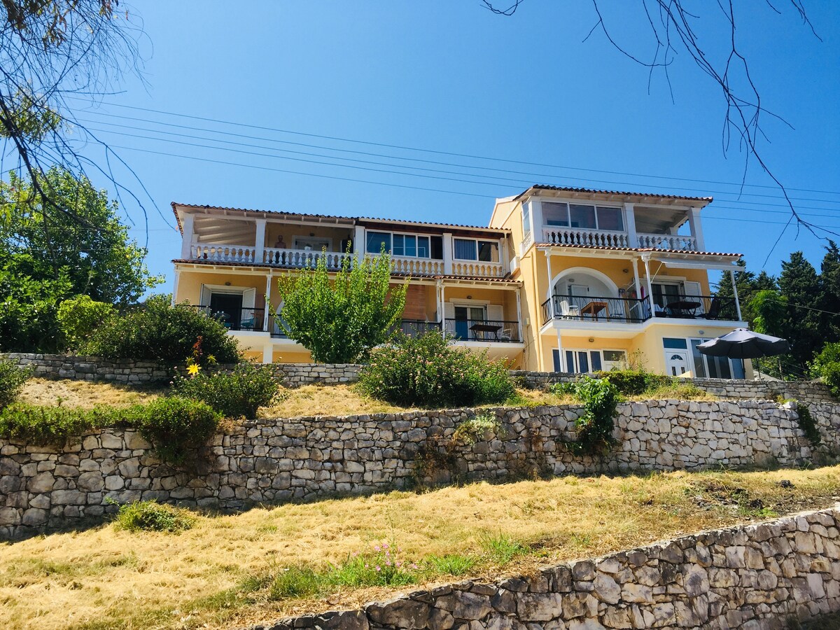Isa itong komportableng studio na malayo sa maraming tao! Matatagpuan nang eksakto sa bundok⛰️, sa kalikasan, sa isang medyo nakahiwalay na lugar ng Strinilas, isang halos remote, tradisyonal na nayon na may pinakamataas na altitude sa isla, sa paanan ng Mountain Pantokrator, ang whice ang pinakamataas na tuktok ng isla. Sa terrace sa harap, masisiyahan ang mga bisita sa paglubog ng araw🌄, na may malalawak na tanawin ng hilagang baybayin ng mga isla ng Corfu at Diapontia! Mula sa hardin, masisiyahan ka sa tanawin ng lambak 🌳at berdeng bundok!