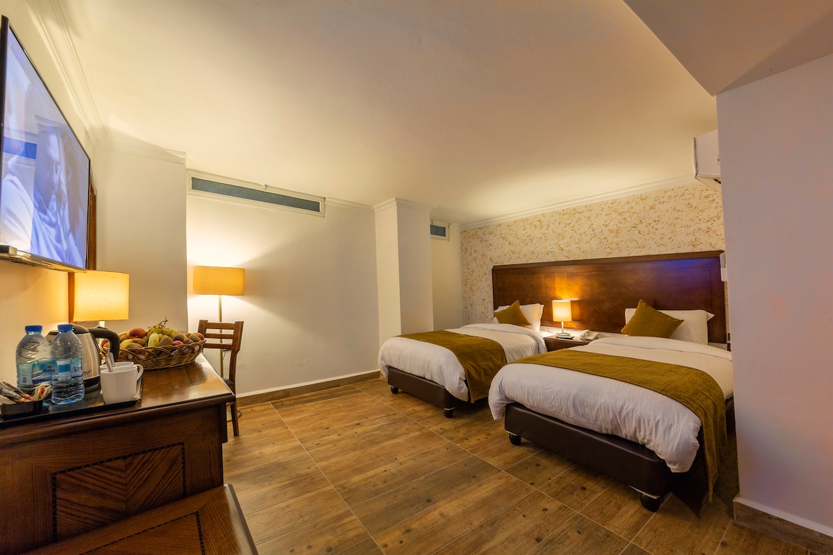 Kuwartong nakabase sa Town Season Hotel sa sahig ng basement. Matatagpuan sa sentro ng lungsod ng Wadi Musa sa loob ng 1 Km mula sa Petra Visitor Center. Nasa terrace ng ika -4 na palapag ang Restawran at ang Coffee Shop. Ang kuwarto ay may Wi - Fi access, mga pasilidad sa paggawa ng tsaa at kape, telebisyon at air conditioning. Nilagyan ang banyo ng paliguan/shower, hair dryer, at mga komplimentaryong gamit sa banyo.