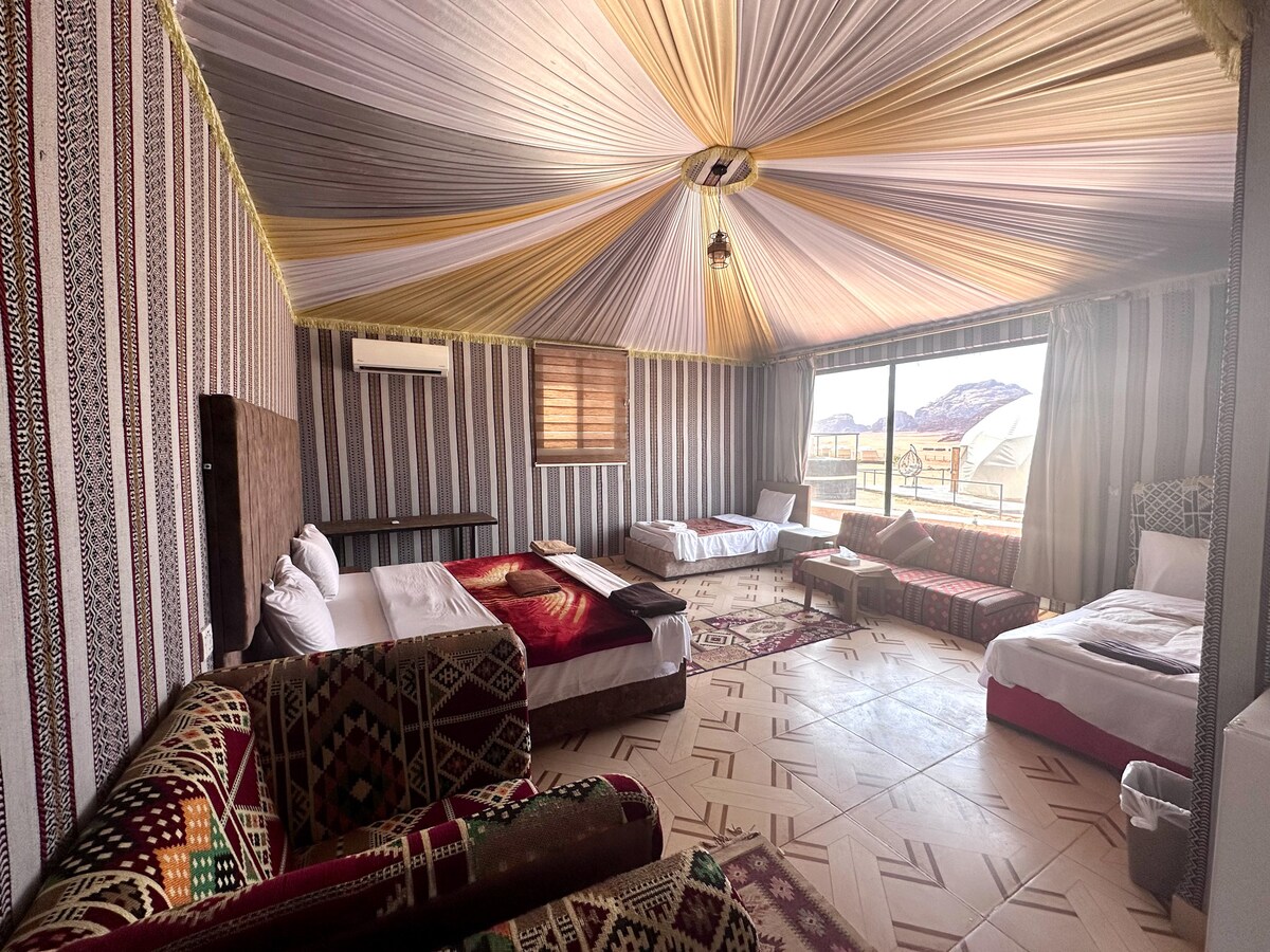 Tumakas sa karaniwan at magsimula sa isang talagang pambihirang paglalakbay sa disyerto. Naghahanap ka man ng mga tanawin na nakakaengganyo sa kaluluwa, o kapaligiran ng Arabian at tunay na hospitalidad sa Bedouin, nangangako ang aming tradisyonal na Deluxe tent ng hindi malilimutang paglalakbay. I - book ang iyong pamamalagi sa amin at tuklasin ang mahika ng disyerto kasama namin sa gitna ng Wadi Rum!