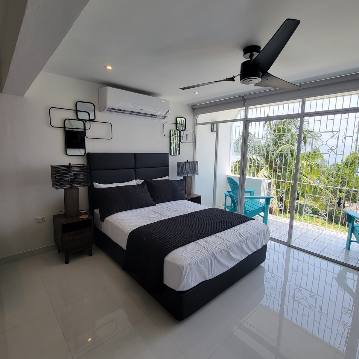 Bagong ayos na studio sa Montego Gardens sa Queen 's Dr. (nangungunang kalsada). Ang Dr 's Cave beach & airport ay 5 minutong biyahe mula sa amin kung walang trapiko. Luma na ang aming gusali, at napakalayo ng lugar sa magarbong lugar, pero bago ang lahat sa loob ng studio. Hindi ito isang gated na komunidad, walang 24/7 na seguridad, ang lugar ay napaka - rural - maaari mong makita ang mga hens at aso na naglalakad sa paligid. Kadalasang nakikinig ng malakas na musika ang aming mga kapitbahay. 5 minutong lakad ang layo ng El Greco resort mula sa amin.
