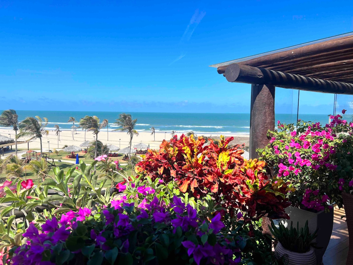 Masiyahan sa pinakamagandang beach condo sa buhangin ng Porto das Dunas. Sa tabi ng Beach Park, may access sa beach foot sa harap ng dagat. Apt 115m2, malayo sa pangunahing pool, na nakaharap sa golf course, 3rd floor, elevator, 3 silid - tulugan, 2 double bed at 1 w/ 3 single bed, 2 suite at 1 na may reversible bathroom, water heater, wifi, smart TV, hairdryer, ironing iron, microwave, coffee maq, washing maq, atbp. Sa mga common area na mayroon kami: gym, grocery, hydro, spa, court, atbp.