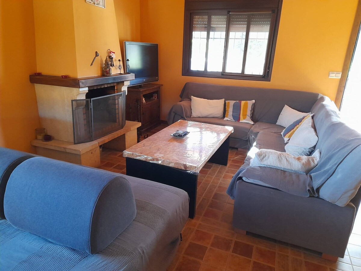 Napapalibutan ng kalikasan at katahimikan, ang aming tirahan ay Huerto Los Castaños, isang natatanging lugar para magrelaks at makipag - ugnayan sa kalikasan. Ang aming maluwag na bahay na bato na matatagpuan sa isang 2 ektaryang ari - arian ay magpapasaya sa mga matatanda at bata. natutulog ang 6 na tao, na may 3 double bedroom, 2 banyo at sala nito na may fireplace, breakfast bar at kusina sa parehong kuwarto na gagawing natatanging oras ang iyong mga pagpupulong kasama ang mga kaibigan o pamilya.