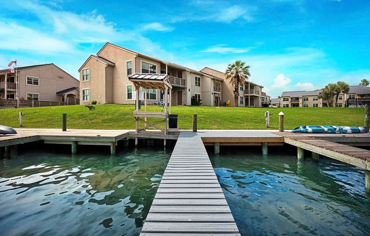 *New Floors* *Superhost* Fish off the boat dock! 3 bed, 2.5 bath first and second-floor condo ready for your boat! Enjoy the sun, shade, and beach in this beautiful condo right on the water. Just minutes from Rockport Beach, Downtown, H-E-B, and Walmart, literally close to everything you might need. This condo has two sun-soaked patios and multiple TVs—everything you want in a romantic getaway, fishing trip, or family vacation. There are 3 pools on the property and utility parking.