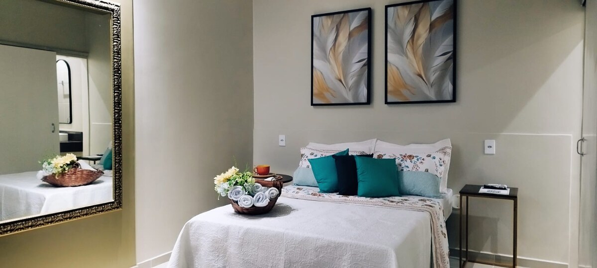 Mga Tampok ng Flats and Apartments Management Studio Café: • dalawang single bed • Wifi • kusina na may mga kubyertos, kaldero, baso, at kutsara. • Flexible na pag-check in, puwede kang pumasok nang mas maaga kung available na ito. • Kasama ang linen at mga tuwalya. • may bayad na paradahan (R$10) na pinamamahalaan ng gusali. • Tulong mula sa simula ng reserbasyon hanggang sa pag‑alis pagkalipas ng 24 na oras