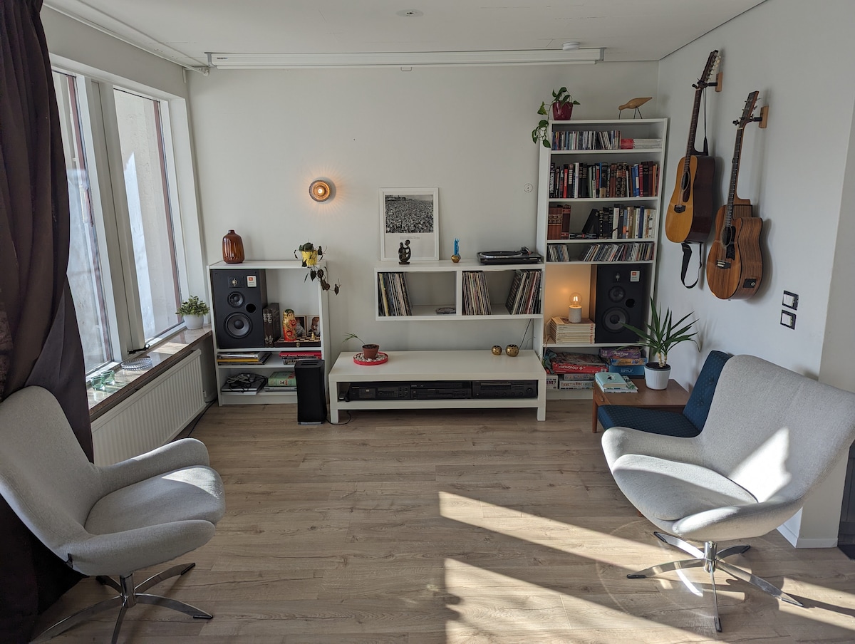 Mahusay na bagong ayos na studio apartment na may pribadong pasukan para sa dalawa sa isang kapitbahayan na pampamilya. 35 square meter na may queen size bed (160x200cm), bagong kusina at bagong banyo. Mabilis na daan papunta sa sentro ng lungsod (15 minutong biyahe), madaling access sa mga pangunahing kalsada at tahimik na kapitbahayan. May mga super market na hindi masyadong malayo at lokal na swimming pool na may mga hut tub at sauna. 1 min lang ang layo ng bus stop. Malapit sa mahuhusay na daanan ng kalikasan na may mga lawa, ilog at bukas na lugar.
