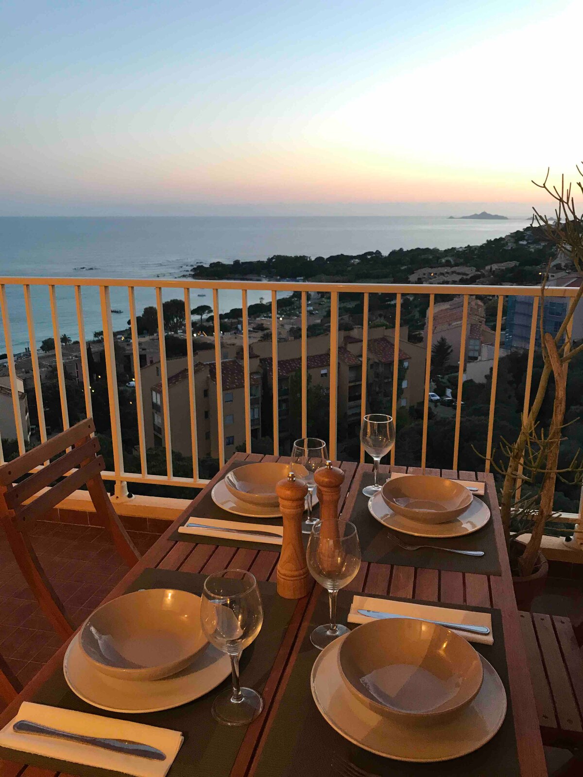 Terrace at tanawin ng dagat ng Sanguinaires Islands