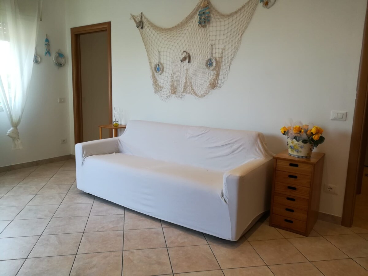Sa isang residential complex, isang magandang three - room apartment na binubuo ng sala, kusina, double bedroom,banyo, terrace at balkonahe. Nag - aalok ang apartment ng posibilidad ng eksklusibong paggamit ng isang bahagi ng humigit - kumulang 50 metro kuwadrado ng solar pavement (sa pamamagitan ng panlabas na hagdan) kung saan maaari mong hangaan ang aming dagat sa kapayapaan at katahimikan! Mayroon ding magandang condominium courtyard Paradahan ng condominium at libreng parking space. Ang apartment ay 1 km lamang mula sa dagat at 5 minuto sa pamamagitan ng kotse mula sa sentro ng Santo Stefano hanggang sa dagat.