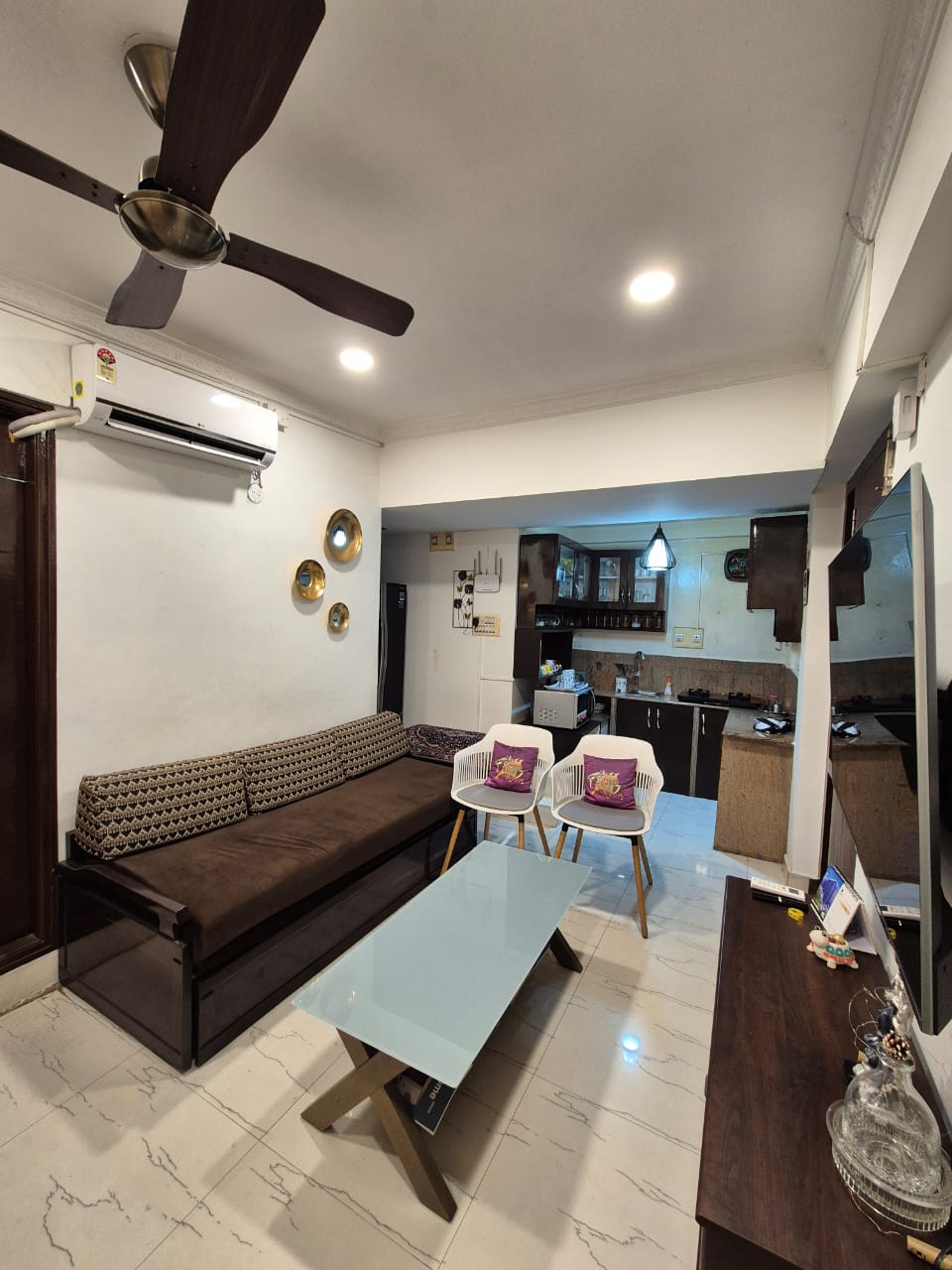 Maligayang pagdating sa aming bagong na - renovate, maluwang na 1 - Bhk flat, na perpekto para sa mga mag - asawa at pamilya na naghahanap ng kaginhawaan at kaginhawaan. Ipinagmamalaki ng silid - tulugan ang queen bed at malambot na orthopedic mattress para sa maayos na pagtulog sa gabi. Magrelaks sa malaking sala na may 43 pulgadang Smart TV, mabilis na WiFi at nakatalagang workspace. May napakalinis na banyo na puno ng mga pangunahing kailangan. Kasama sa kumpletong kusina ang mga pangunahing sangkap, de - kalidad na kasangkapan, at crockery para sa iyong mga paglalakbay sa pagluluto.