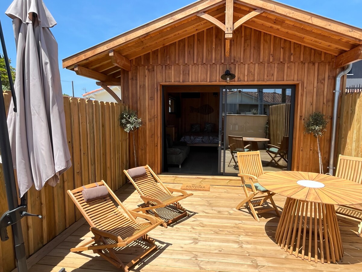 Ang maliwanag at naka - soundproof na studio na may independiyenteng pasukan sa aming bagong 2023 villa ay idinisenyo para sa mga naghahanap ng tahimik na kapaligiran, upang makapagpahinga mula sa pang - araw - araw na buhay. Tangkilikin ang tahimik at mapayapang kapaligiran sa Arcachon basin para sa isang nakakarelaks na bakasyon. Nag - aalok ang aming Villa ng mga de - kalidad na serbisyo, na may kaakit - akit na studio na may maximum na kapasidad na dalawang tao. Nag - aalok kami ng awtentikong setting sa gate ng Cap Ferret sa pagitan ng palanggana at karagatan.