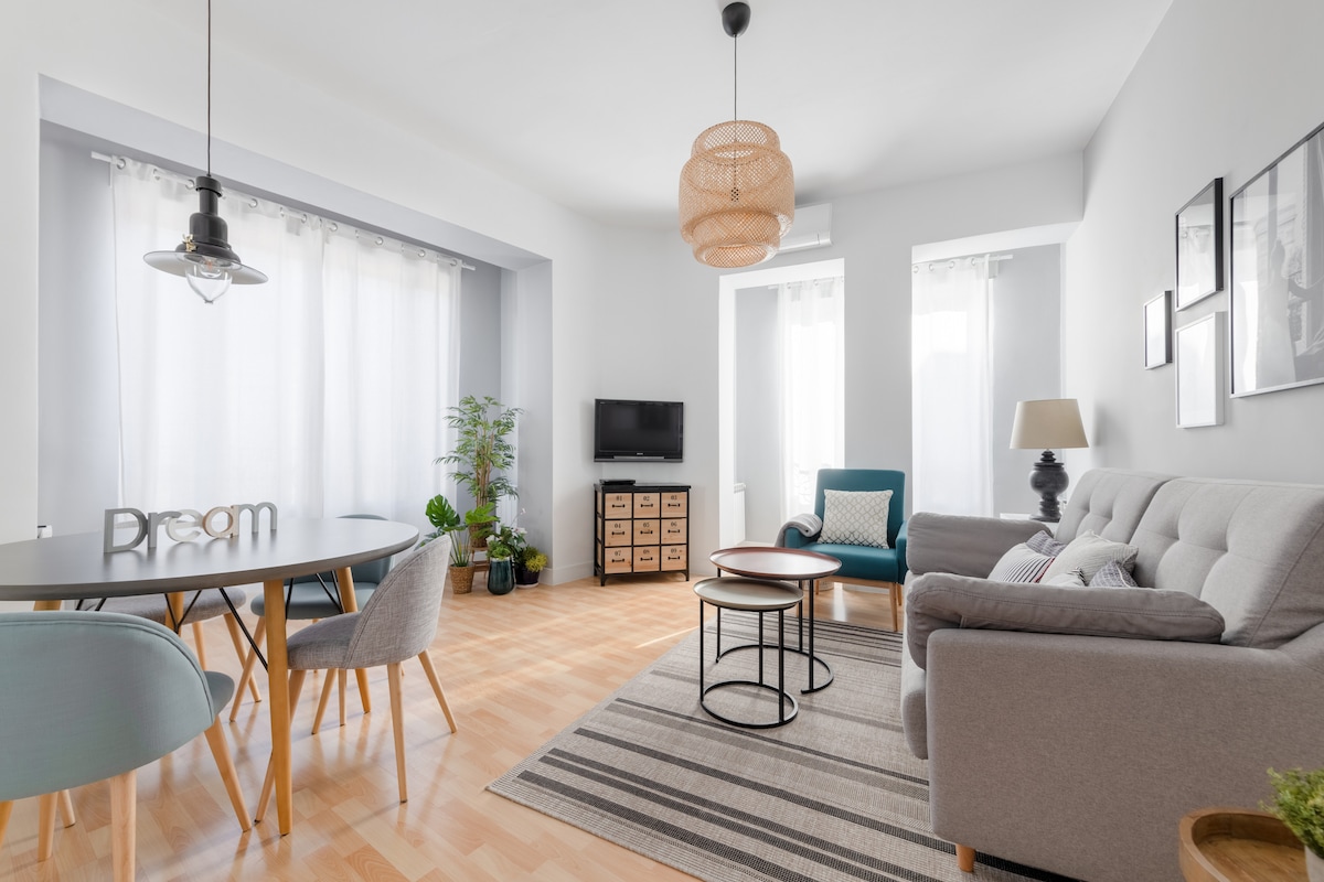 Naka - istilong apartment na matatagpuan sa Plaza de Isabel II, sa harap ng Teatro Real at ilang hakbang mula sa Royal Palace at sa metro ng Opera. Na - renovate sa modernong bagong estilo ng rustic, mayroon itong dalawang silid - tulugan na may mga double bed at dalawang buong banyo. Isang sala na may malalaking bintana, 3 upuan na sofa, smartTV, Wi - Fi, silid - kainan para sa 6 na tao at kusina na kumpleto sa kagamitan. Mayroon itong lahat ng kaginhawaan para gawing hindi malilimutan ang iyong pamamalagi at ang mga pasilidad para sa pamamasyal sa lungsod.