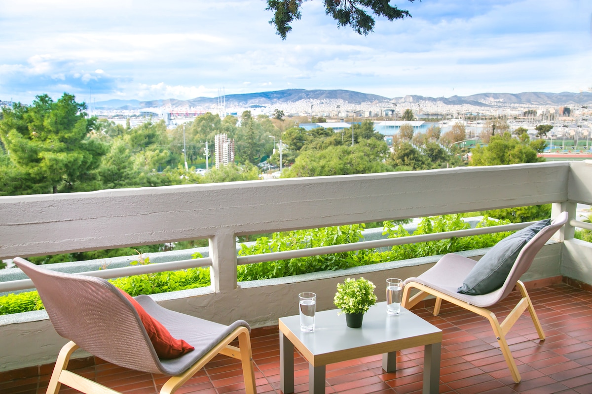 Ito ay isang tunay na isang uri ng apartment, na may orihinal na mga elemento ng panloob na disenyo mula sa 70s, na sinamahan ng lahat ng mga modernong kaginhawaan! Maluwag, maliwanag, at perpektong matatagpuan ito sa tabi ng dagat, sa baybayin ng Athens, 20 minuto ang layo mula sa sentro ng lungsod.