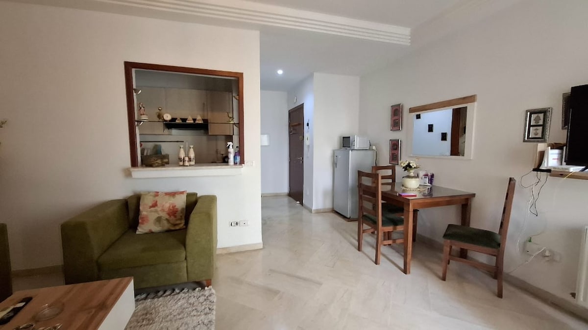 Apartment sa unang palapag ng bagong marangyang tirahan (Rymes) na tahimik, malinis, ligtas gamit ang panseguridad na camera, binabantayan araw at gabi, libreng paradahan, malapit sa lahat ng amenidad: mga cafe, restawran, pizzeria, Carrefour Market, at ennahli urban park.
