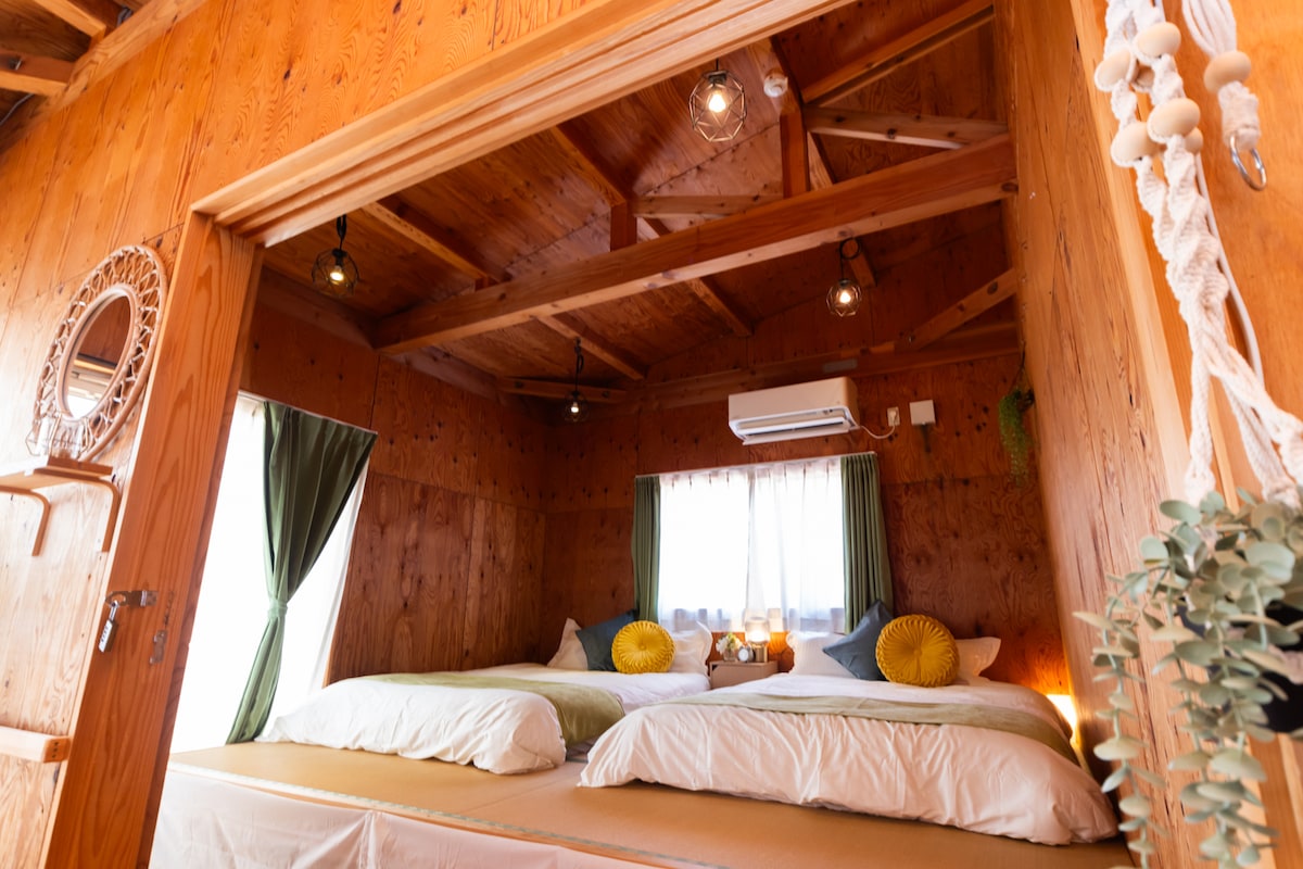 Buong bahay ito sa Yuasa, Arita - gun, Wakayama Prefecture. Ang pangunahing bahay at ang annex sa 2nd floor ng cafe ay maaaring tumanggap ng 6 na bisita. Ito ay isang magandang inn na may dagat sa harap ng iyong mga mata! Puwede kang mag - canoe, mag - sup, at mag - BBQ sa beach. Kung bago ka sa canoeing o sup, may instructor, para matamasa mo ito nang may kapanatagan ng isip. Isa itong inn kung saan masisiyahan ka sa dagat, tulad ng paglangoy, pangingisda, at pagrerelaks habang nanonood ng paglubog ng araw. Masisiyahan ka rito nang sama - sama, mula sa maliliit na bata hanggang sa advanced na paglalaro sa dagat. May cafe din sa ground floor, kaya cafe ang tanghalian. Kaakit - akit din ang hapunan para magkaroon ng BBQ at mag - enjoy sa mga lokal na sangkap! Hiwalay ang pasilidad sa pangunahing bahay. Pangunahing bahay (2LDK) Malaking terrace kung saan matatanaw ang dagat Kusina Sala · 2 pandalawahang kama 2 futon Palikuran - Paliguan Distansya (ito ang gusali sa tabi ng pangunahing bahay) · 2 pandalawahang kama - Set ng mesa Palikuran 10 minuto mula sa ◎Arita Minami Interchange Available ang◎ WiFi ◎Paradahan para sa hanggang 4 na kotse Available ang ◎BBQ set rental (kalan, silindro, mesa, upuan) * Kinakailangan ang mga reserbasyon para sa mga canoe at sup.
