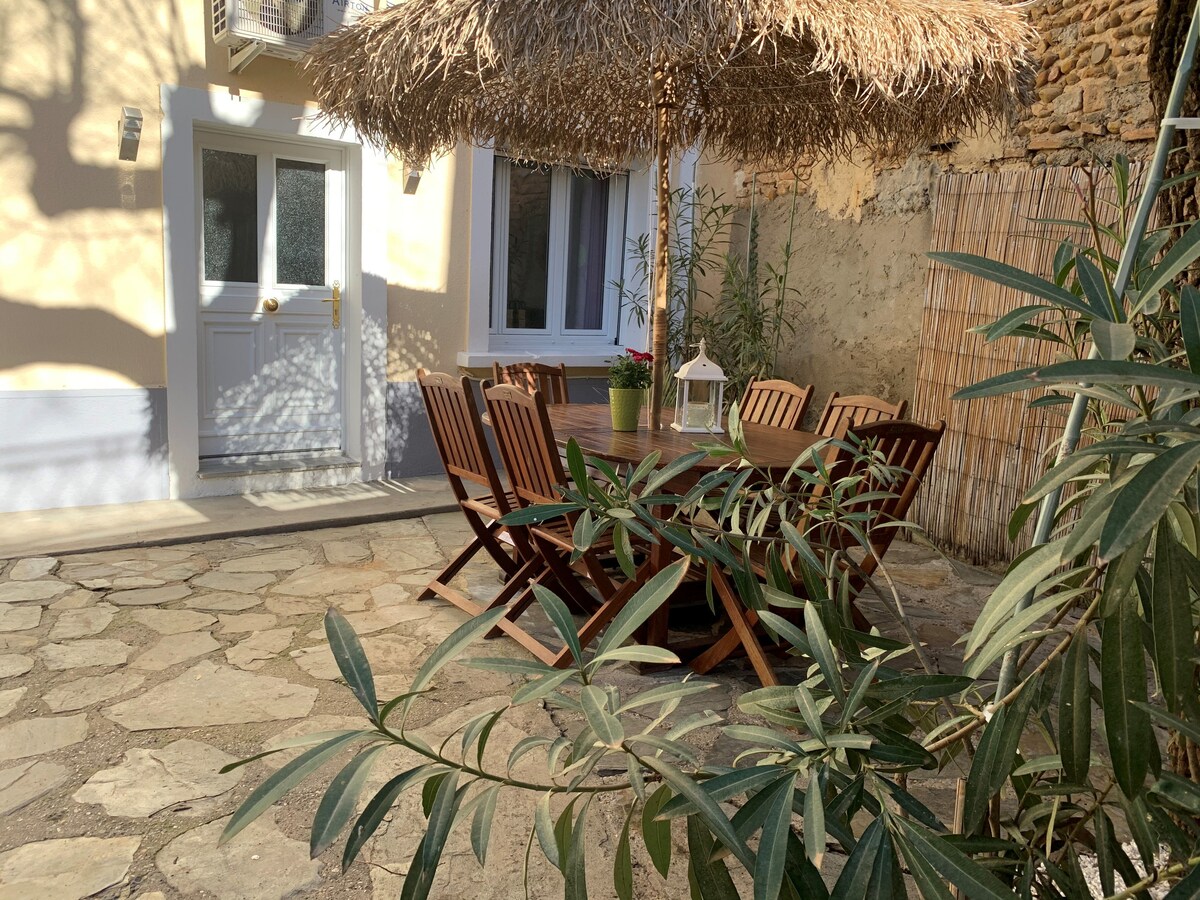 Kaaya - aya at maliwanag na studio sa ground floor, na matatagpuan malapit sa sentro ng lungsod. Tumatanggap ng tatlong tao, ang tuluyang ito ay binubuo ng pribadong pasukan, isang silid - tulugan, isang banyo at isang sala na may dagdag na uri ng higaan na BZ. Nilagyan ito ng lahat ng kinakailangang kaginhawaan; aircon, dishwasher, washing machine, TV... Sa labas, puwede kang mag - enjoy sa pribadong hardin na may terrace, barbecue, table tennis table, at sunbathing. Ligtas na paradahan.