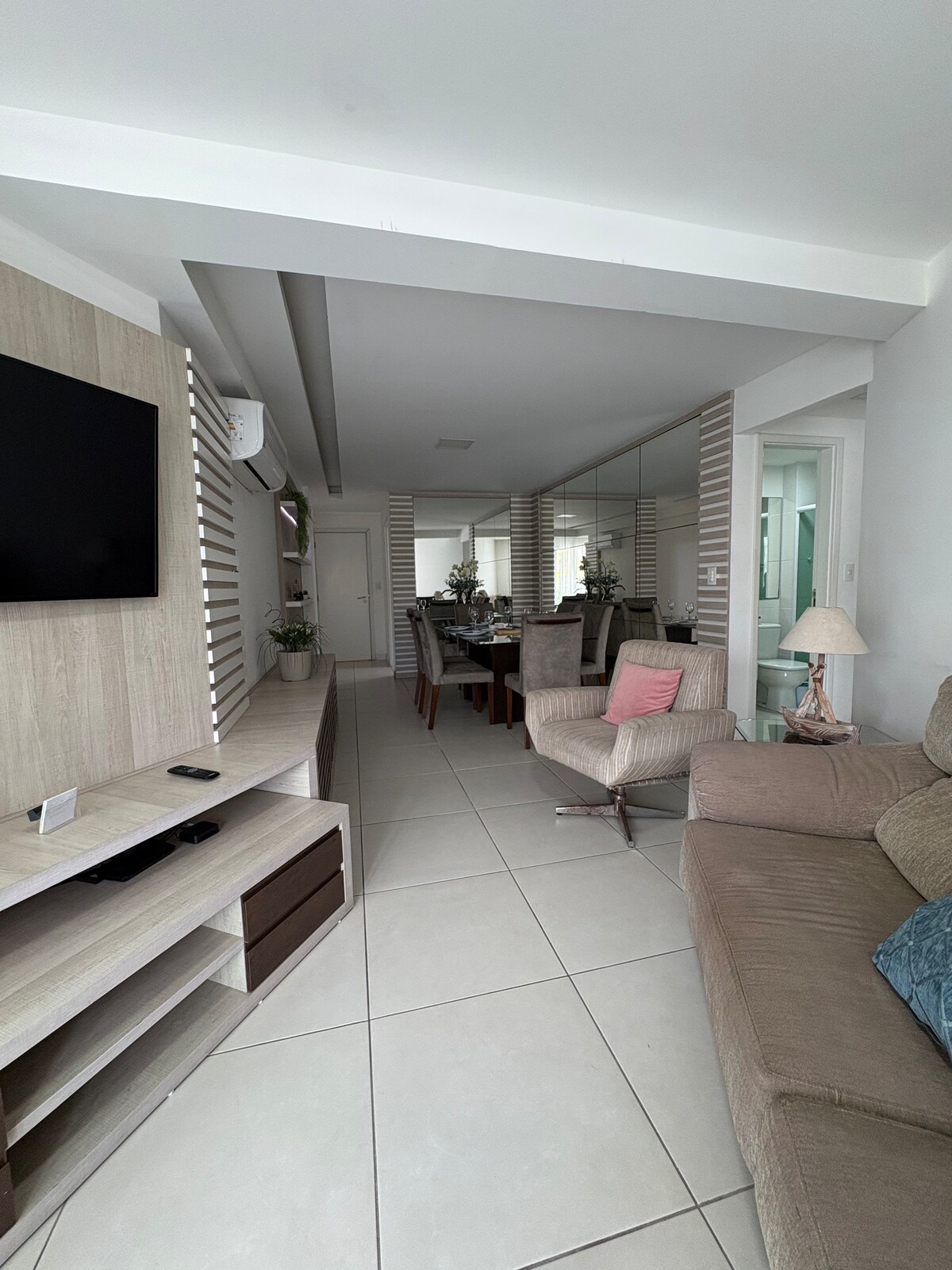 Apartment na maaaring tumanggap ng hanggang 04 bisita ( suriin ang mga litrato para pag - aralan ang kaginhawaan at pag - aayos ng mga libreng kutson) na may balkonahe , air conditioning, TV, refrigerator , work table at pagkain , kusina na nilagyan para sa maliliit na pagkain , aparador , komportableng banyo at may paradahan. Matatagpuan ito malapit sa commerce , gastronomic center at 700 mts ng Praia do Forte Temeiro sa Hotel para mag - iwan ng bagahe nang walang bayad