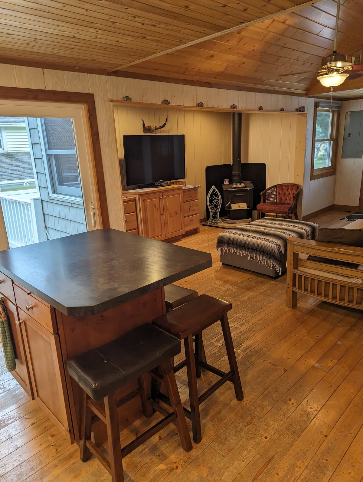 Maginhawang cabin sa East Lake. Matatagpuan sa gitna. Magkaroon ng kape sa umaga sa deck. Isang milya mula sa halos lahat ng bagay. Maglakad papunta sa berdeng espasyo, Arnold's Park, mga konsyerto, merkado ng mga magsasaka, mga palabas sa sining, atbp. Maglakad nang malayo papunta sa mga restawran/bar. Huwag mag - alala tungkol sa pagmamaneho o paradahan. Malapit sa Ritz, makinig sa musika sa bakuran, Walang naghihintay na upuan! Maglakad papunta sa Spudnutz at hayaan ang mga bata na maglaro sa parke ng bangka.. May pantalan pero hindi magagamit para sa pangmatagalang paradahan ng bangka. Sa kasamaang - palad, walang lugar para sa trailer ng bangka