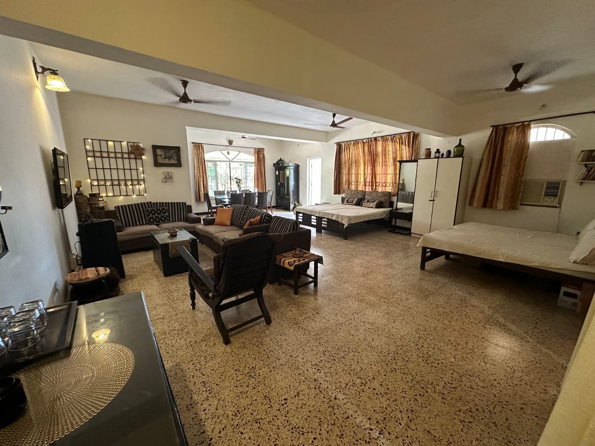 Enjoy a serene experience at this central yet peaceful place. All major beaches are well within reach. V. close to happening places like Pablo's, Purple Martini, Thalassa, Chapora Lane, Baba Au Rhum 2.0! All parties close by! Vagator : approx 4-5 minutes drive Anjuna : 7 minutes drive Baga : 10 minutes drive Soro village pub : 1 minute drive New Mopa Airport: Around 40 min We now have 2 Internet connections! Remain connected always with our backup internet!Only for Indian guests
