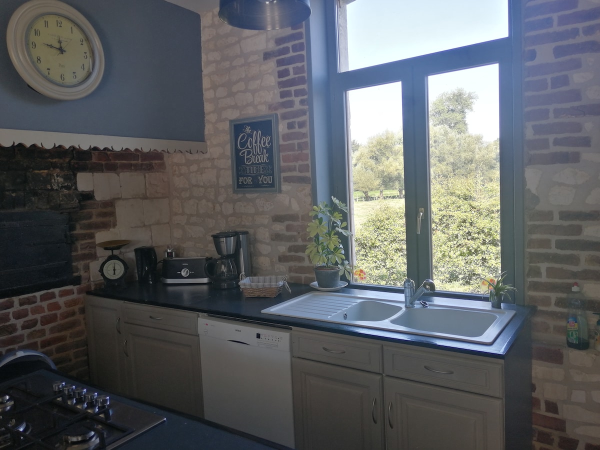 Tuklasin ang aming ganap na inayos na bahay na may pinaghalong pagiging moderno at lumang kagandahan. Masisiyahan ka sa aming fireplace na gawa sa kahoy sa gabi ng taglamig. Ang aming mga silid - tulugan ay may pribadong banyong may toilet, lababo, shower o bathtub. May toilet na naka - install din sa ground floor. Nagbibigay kami ng mga board game para sa iyong gabi kasama ng pamilya o mga kaibigan. Ihahanda ang mga higaan at may mga tuwalya. Magkita tayo sa lalong madaling panahon☺️, Karine at Olivier