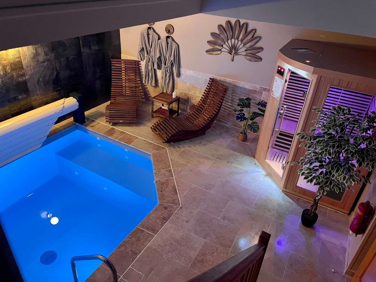 Pagkatapos ng iyong araw ng trabaho, ang iyong mga paglalakbay o ang stress ng pang - araw - araw na buhay, gusto mong magrelaks at mag - recharge sa labas ng iyong tuluyan... Sa isang mainit, tunay at kilalang - kilala na setting, halika at magrelaks at magrelaks para sa isang gabi (o higit pa!). Underfloor heating, outdoor jacuzzi at pribadong hardin, naghihintay lang ang Gary Suite para sa iyo... At para simulan nang mabuti ang iyong araw, tangkilikin ang aming "Almusal" na tray na espesyal na inihanda para sa iyo nang hindi binibilang ang aming tray na "Almusal".