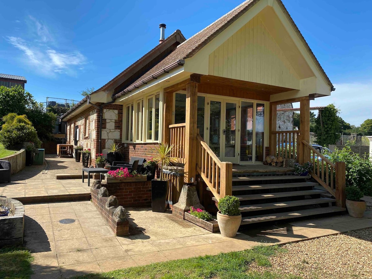 Isang magandang bukas na plano, self catering na chalet. Espasyo para sa Sanggol at travel cot. Ang isang mahusay na kumilos na aso ay malugod na tinatanggap. 15% diskuwento sa biyahe sa Ferry kasama ang Red Funnel. Nakatayo sa Squirrel Trail/cycle path .deal para sa mga naglalakad,nagbibisikleta o sinumang naghahanap ng isang mapayapang pahingahan. Woodburner, perpekto para sa maginhawang gabi sa. Lahat ng troso ay inilagay. Pribadong secure na hardin na nakaharap sa timog na may mesa at mga upuan. Ligtas na tindahan para sa mga bisikleta. Libreng paradahan. Libreng Wifi. Ang award winning na Pointer Inn & Bawang Farm ay maaaring lakarin.