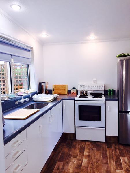 Komportableng king bed, magagandang tanawin, marangyang linen, malaking projector na may Netflix sa pamamagitan ng iyong device at unlimited/mabilis na wifi. Kumpletong kusina na may buong sukat na refrigerator/ freezer, dishwasher, oven, 4 na burner induction cook top at BBQ. Washing machine at nakakamanghang banyong may tisa. Idinisenyo para sa magkasintahan. Maaliwalas, naka - istilong, tahimik, pribado at romantiko. Bago at layunin na binuo, mararangyang, maingat na idinisenyo at maikling biyahe pababa ng bayan. AirCon/ventilator sa kisame para sa sariwang hangin sa tag‑init. Apoy ng kahoy para sa mga maginhawang gabi ng taglamig.