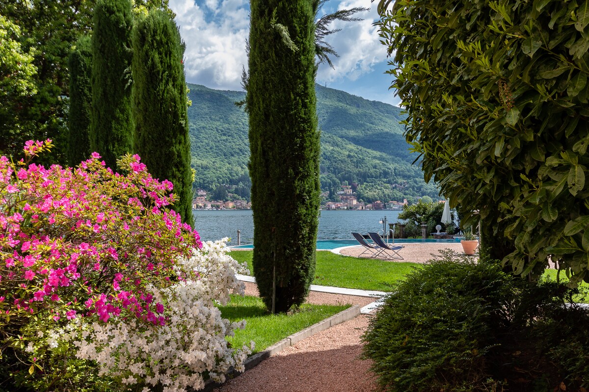 Matatagpuan ang Studio sa harap mismo ng bayan ng Como, na may 180 degrees na tanawin ng lawa. Mapupuntahan ang sentro ng lungsod ng Como sa pamamagitan ng kotse, bisikleta, bus, o kahit ferry - boat - dahil may available na pampublikong serbisyo ng transportasyon ng ferry - boat. Ang serbisyong ito - na matatagpuan 50 metro mula sa aming property - ay magdadala sa iyo nang direkta sa sentro ng lungsod ng Como sa loob ng 8 minuto at sa iba pang mga destinasyon ng lawa. Available ang pribadong paradahan sa site CIR: 013075 - Lim -00001